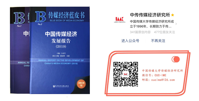 7.传媒经济蓝皮书系列:《中国传媒经济发展报告(2018)》《中国传媒经济发展报告(2019)》社会科学文献出版社2018/2019年,《中国传媒经济发展报告(2020)》中国国际广播出版社,2020年